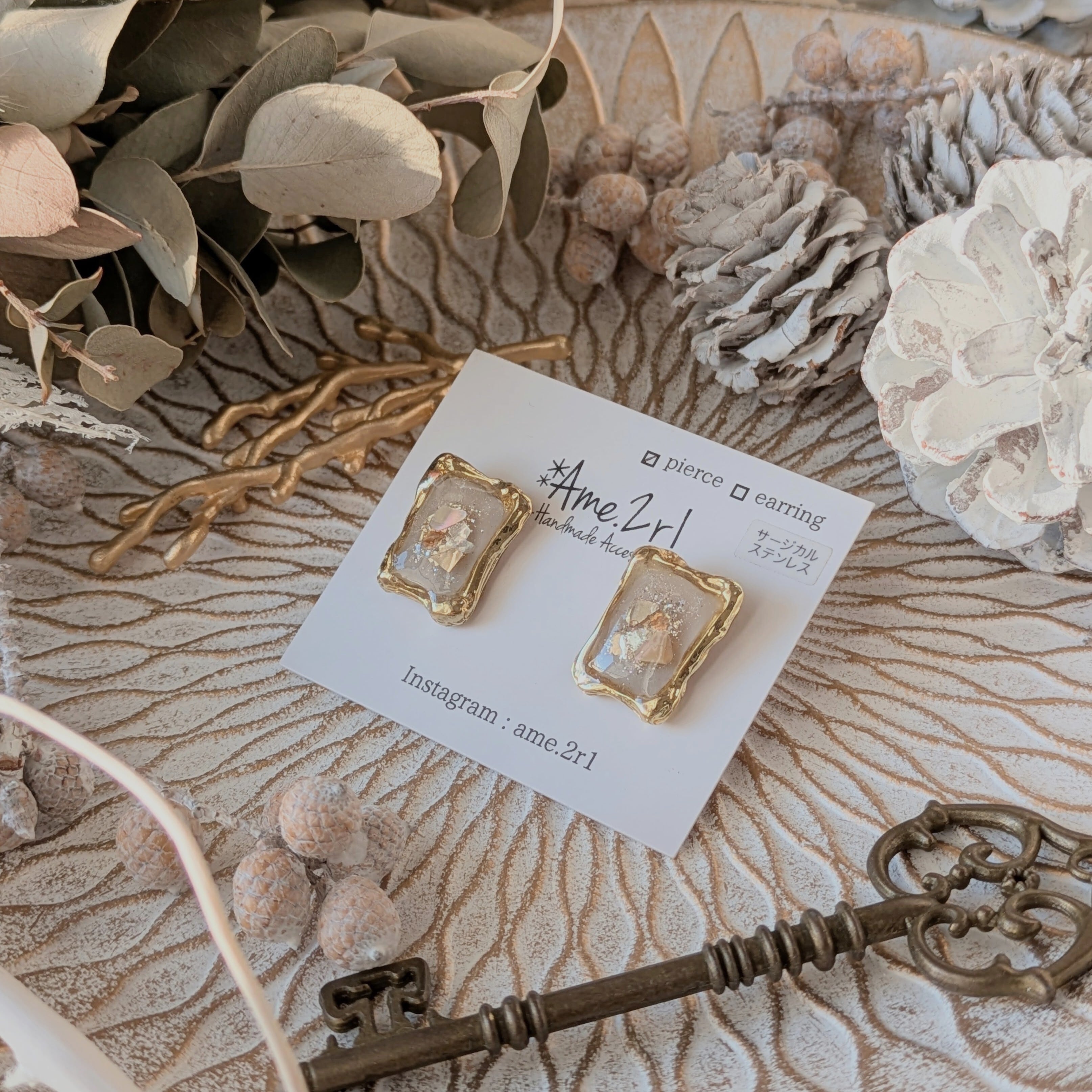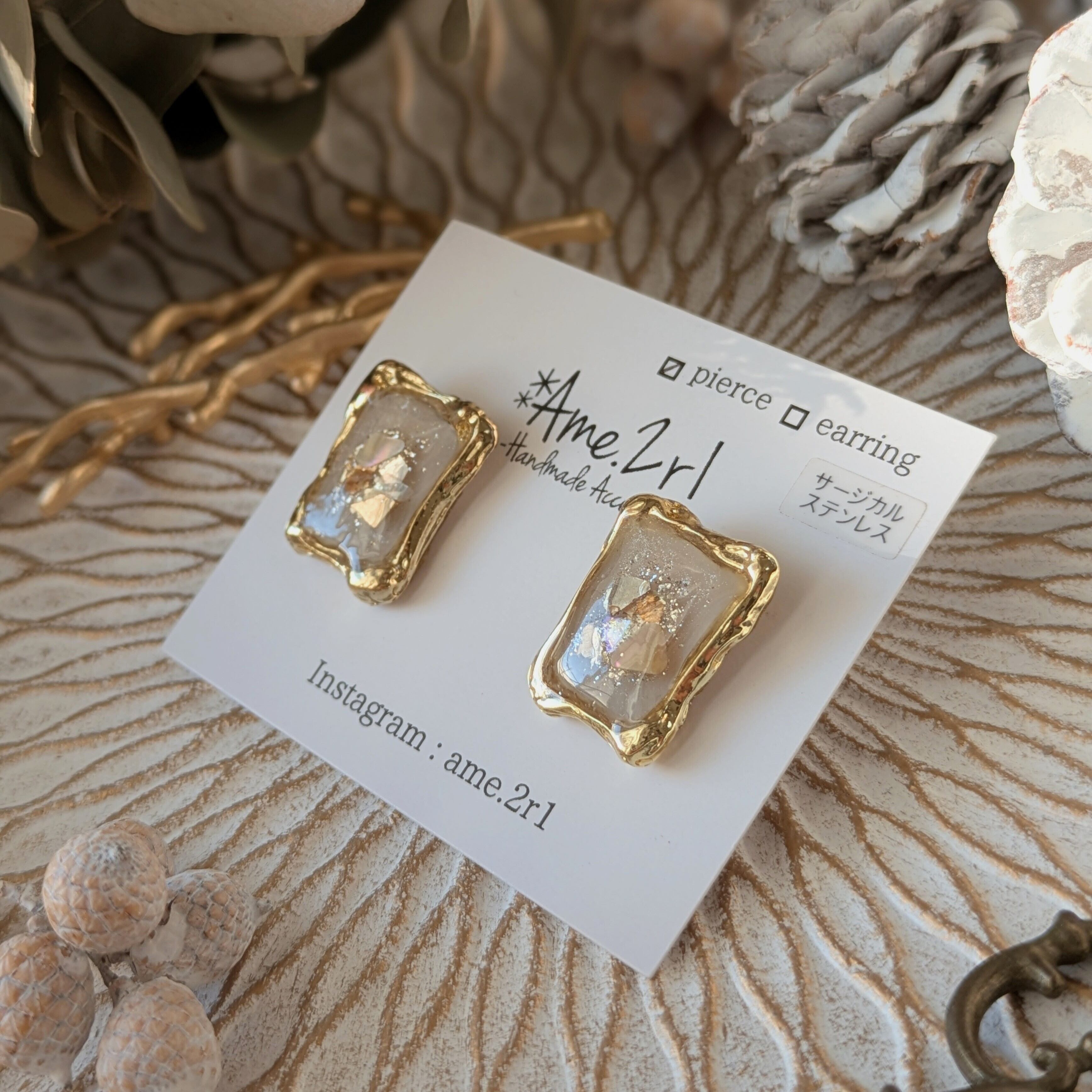 ※四角い枠はサージカルステンレスではございませんが、ぐるっとレジンでコーティングしております