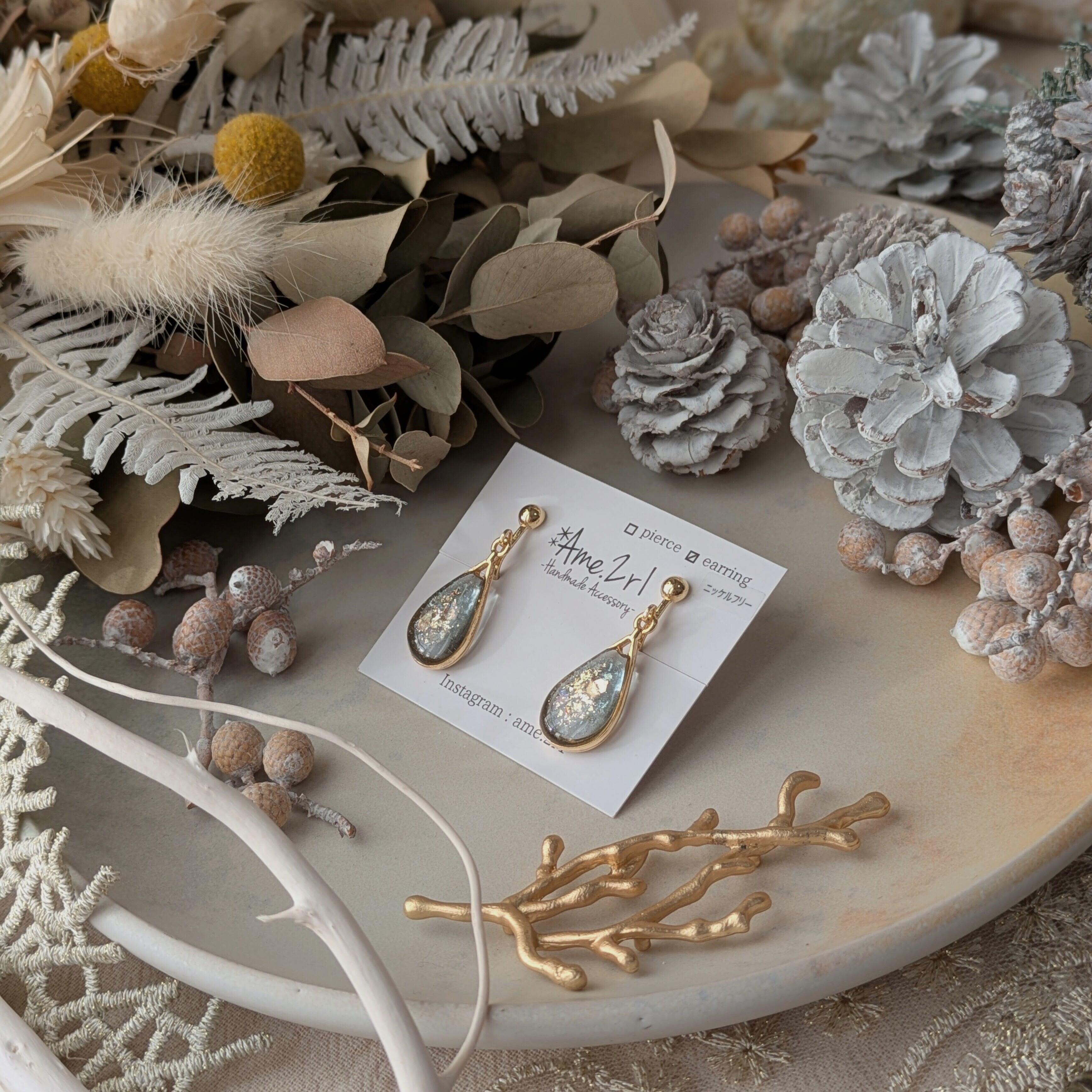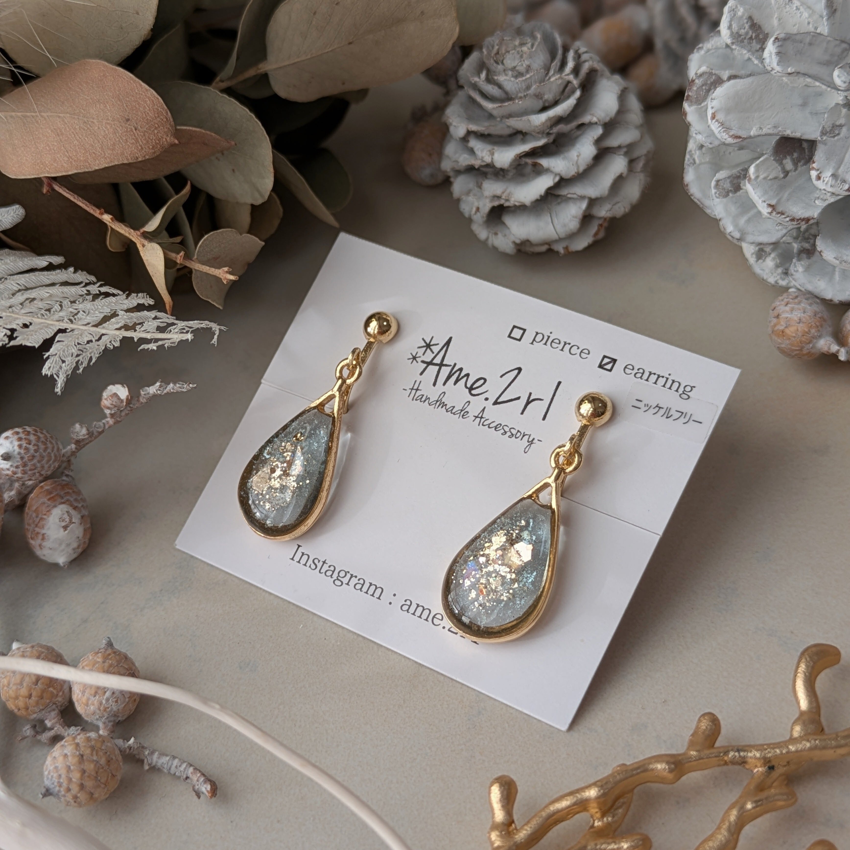 イヤリング素材 : 真鍮+ニッケルフリーメッキ