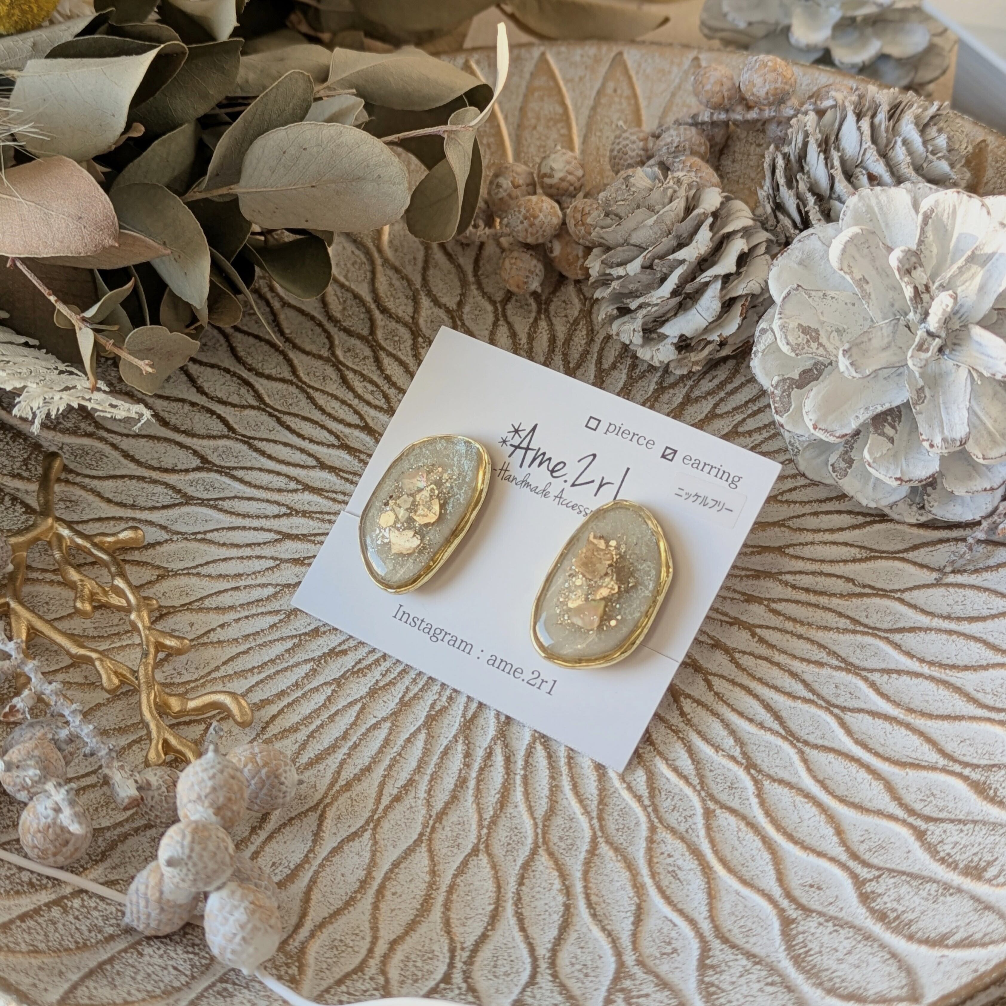 ※楕円の枠はニッケルフリーではございませんが、ぐるっとレジンでコーティングしております